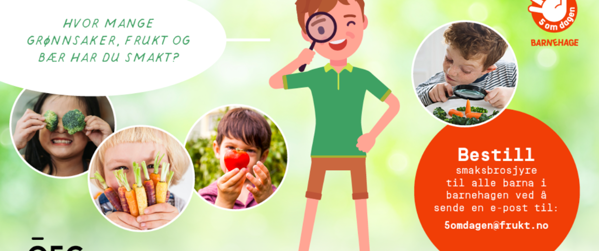 Barna har fått med seg en smaksdetektiv brosyre hjem. Vi ønsker å motivere barna både i barnehagen og hjemmet til å spise og smake på alle grønnsaker, frukter og bær. Derfor har vi bestilt en smaksbrosyre laget av "frukt.no", der barna kan b.l.a krysse av på de ulike frukt, bær og grønnsakene som de smaker på. Tilrettelegg for ditt barns forutsetning og utforsk sammen!
